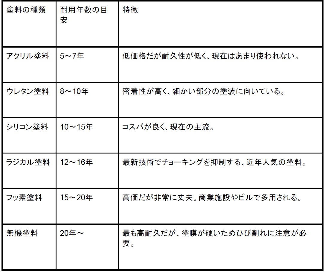 再塗装の時期は、前回使用した「塗料の種類」によっても大きく異なります。