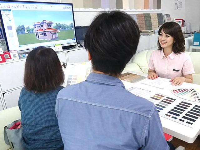 打ち合わせの際にはパソコンやテレビ画面を使用してカラーシュミレーションを行います。